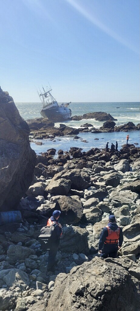 The Coast Guard, California Department of Fish and Wildlife’s Office of Spill Prevention and Response, Marin County Office of Emergency Services and Greater Farallones National Marine Sanctuary continue to respond as a unified command to a grounded vessel along the shoreline north of Dillon Beach.