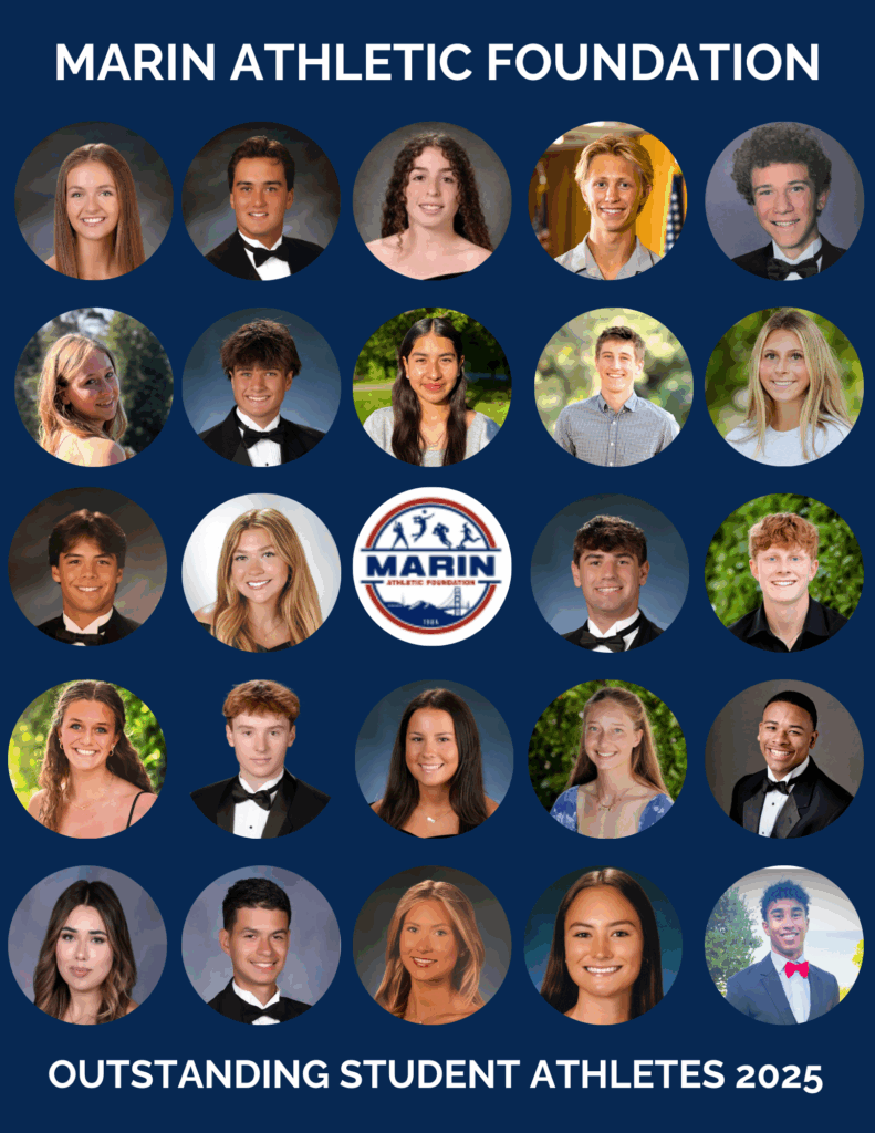 These outstanding athletes and scholars, from Marin County High Schools, will be honored on Monday, May 5, 2025, at the Embassy Suites Hotel, 6:00 PM. They will be individually recognized for their excellence and many accomplishments during their four years of high school. Reservation forms available online at marinathleticfoundation.org.