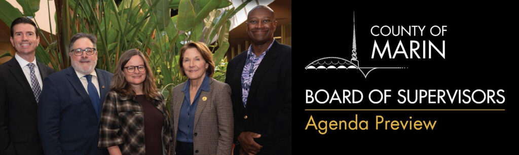 The following provides a list of selected highlights from the Marin County Board of Supervisors agenda and is not meant to be an exhaustive list of the entire agenda. The County posts and distributes a full agenda for each Board of Supervisors meeting on the Thursdays prior to a scheduled Tuesday meeting.
