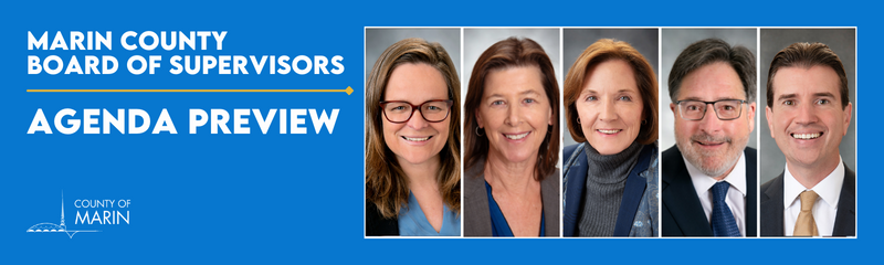 The following provides a list of selected highlights from the Marin County Board of Supervisors agenda and is not meant to be an exhaustive list of the entire agenda. The County posts and distributes a full agenda for each Board of Supervisors meeting on the Thursdays prior to a scheduled Tuesday meeting.