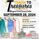 Shop for unique second-hand treasures at an indoor community flea market. The Margaret Todd Senior Center in Novato is hosting its Fall "Trash to Treasures" Flea Market on Saturday, September 28, from 9:00am - 2:00pm. The market is held indoors, rain or shine and admission is FREE! Food and other … [Read more...] about Fall Trash to Treasures flea market, Sept. 28