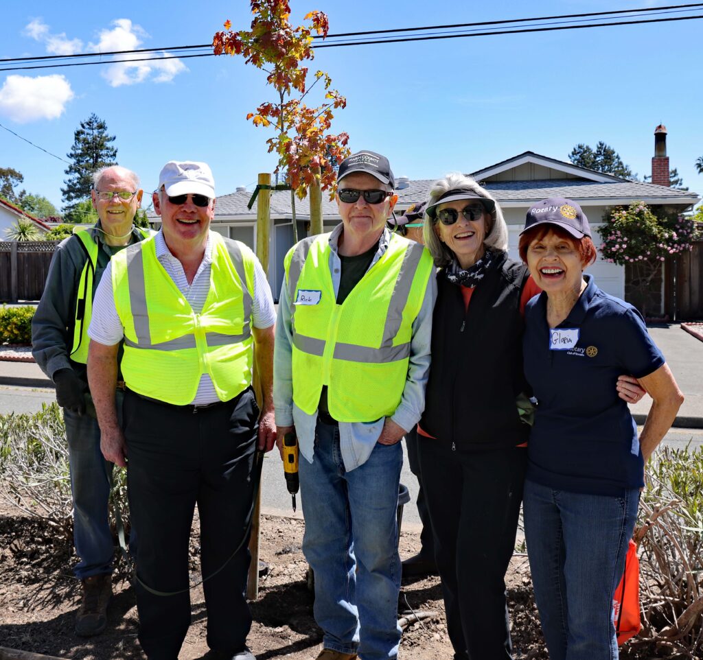 Gloria Violin of the Rotary Club of Novato Environmental Committee assembled a “Tree Team” that included Jeanne and Patrick MacLeamy, Rick Hanley, Larry Paulger and Gloria Violin. Volunteers representing all four Rotary Clubs in Novato joined by Novato City Street Crews and City administrators.