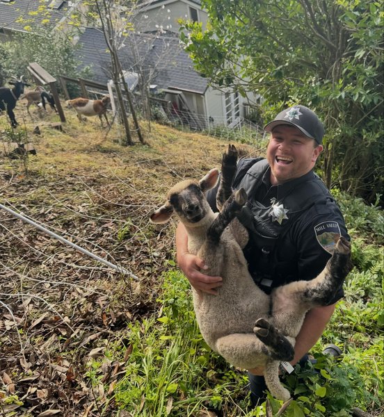 The call said the herd was wandering around town. Now, they don’t regularly train officers on goat hearding, even in bucolic Mill Valley. But Officer Preston was up to the task.
