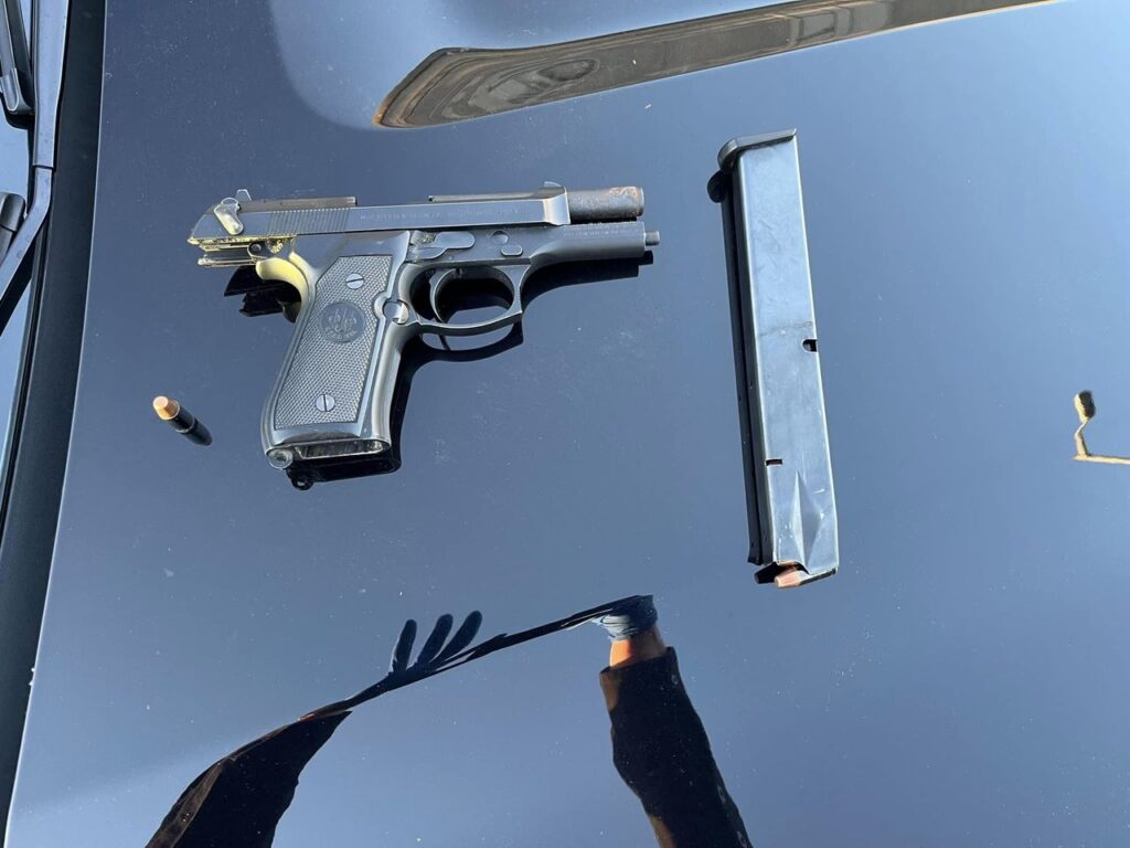 A search of the suspect’s car revealed drug paraphernalia in the passenger compartment and a loaded handgun in the trunk. The handgun had an extended magazine. Records showed the gun was registered to one of the occupants, who was a convicted felon and prohibited by law from being able to possess it.